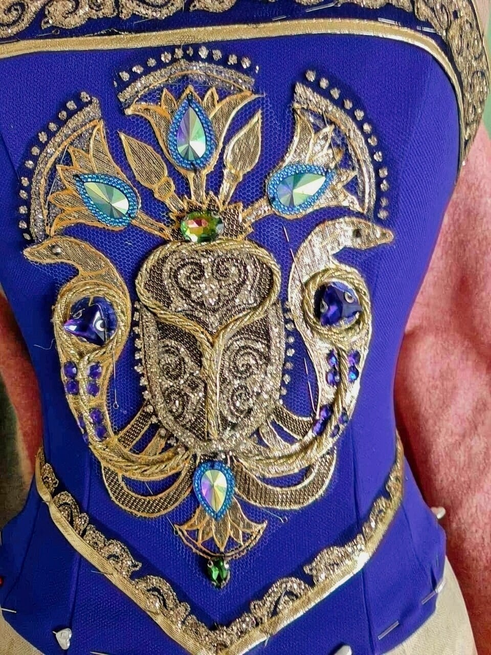 Hier sind einige Beispiele für die künstlerische Gestaltung von Tanzkostümen, Tutus und Leibchen, die ich in der Ukraine hergestellt habe. Außerdem einige Masken, handgefertigt in Pappmaché-Technik und mit Brokat und Kordeln verziert. Darunter befinden sich in einem kleinen Rahmen thematische 3D-Kompositionen aus verschiedenen Stoffen, Perlen und Keramik. Alles ist von mir handgemacht.
